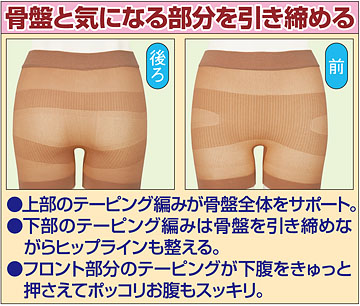近頃、体型が気になる…特にヒップやポッコリお腹、ヒップラインをスッキリ整えたい方にぜひ使っていただきたい骨盤シェイパーです。ベルト式のウエストニッパーと違い、脱ぎ着が面倒、服のウエストの収まりが悪いなどということもありません。ショーツのようにはくだけで骨盤部分をパワーネットでしっかり締め付けて安定。お腹部分もギュッと押さえ込み、ポッコリお腹が気になる方も安心。さらに骨盤を引き締めながらお尻を持ち上げヒップラインも整えてくれます。また、ショート丈のソフトガードルだから締め付けすぎない着用感とソフトな段階編みでスッキリしたラインを作り、1枚で着用できるマチ付きなのでパンツラインも気になりません。