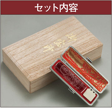 (姓名はひらがな、カタカナ、漢字まで最大6字)。牛革印鑑ケースに入れ桐箱収納でお届けします。