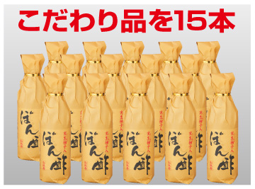 伝統の醸造法を頑固に守り続ける、創業百有余年の老舗が手間ひま惜しまず造り上げた、最高級のぽん酢です。味の決め手となる酸味には、本場・四国徳島産のゆずとすだちを贅沢に使用。さらに醤油、昆布、鰹を加え、職人が絶妙の味わいに仕上げました。スーパーなどで売られている品とは、まったく違う本格派の美味しさ。ゆずとすだちのフルーティーな香りと酸味に、昆布と鰹の旨みが加わり、さっぱりした味わいの中にも深いコクを感じさせます。お刺身や焼き魚などの魚料理はもちろん、お肉や野菜など幅広い料理に使えます。冬の食卓に欠かせない鍋物には、もう絶品の美味しさ。買って持ち帰るには重くて大変な瓶入りを15本まとめて、ご自宅までお届けします。