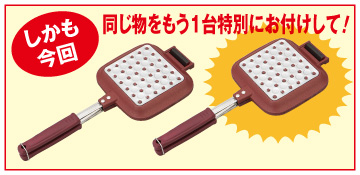 お好みの具材を挟んだホットサンドは、お子さまからお年寄りまで大人気のメニュー。あなたもご家庭で手軽に作って味わってみませんか?このスマイルクッカーDXは周りをしっかり挟みこんで焼くので、外はサクサク、中はふっくらと仕上がります。しかも中身が飛び出にくく、きれいに食べられるのが魅力。食パンの耳も落とさずムダがなく、サクサクの美味しさが味わえます。ハムやチーズなど定番の具材はもちろん、きんぴらや肉じゃがなど残った和風のお惣菜を挟んでも美味しくいただけます。他にも焼おにぎりや焼き魚もおまかせ。上下を外して別々にミニフライパンとしても使え、炒め物などにも大活躍します。今回は一度に調理でき、忙しい朝にも大助かりな2食分ホットサンドが作れる2台組に、こびりついて落ちにくい油汚れなどが面白いように拭き取れる多目的おそうじクロス2枚もお付けしてお届けします。