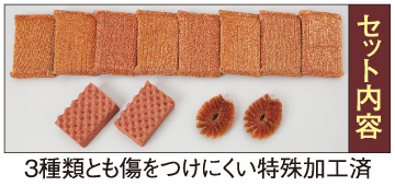 使い道や使う場所に応じて使えるループ、スポンジ、タワシの12個セットです。銅を練り込んだ雑菌の繁殖を防ぐ抗菌防臭加工により、いつも清潔にお使いいただけ、ぬめることもありません。また、素材を傷つけない加工を施していますのでステンレスやホーローはもちろん、ガラスや陶器からテフロン加工品まで様々な汚れをスッキリ落とします。銅微粒子がクレンザーの役目をするので少量の洗剤でOK。ループは薄くて使いやすく食品や鍋、フライパンに。スポンジはキッチンももちろん、お風呂の湯アカやタイルの目地などのお掃除にも最適です。タワシは焦げついた鍋やまな板など頑固な汚れにも対応。汚れ落としの作業がグーンとはかどります。