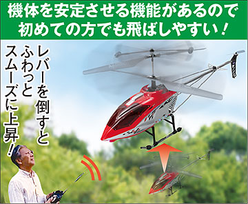 重厚感あふれるヘリコプターが大空高く舞い上がる想像するだけでワクワクする、大迫力のラジオコントロールヘリコプターです。サイズはなんと全長106cm! まさに大空ひとり占めの豪快な飛行が、思う存分楽しめます。金属部品を使用し、細部までこだわった精巧な造りは本物そのままの迫力で、操縦する手にも力が入ります。機体安定機能搭載で初心者の方でも飛ばしやすく、慣れてくれば空中で停止したり、左右に旋回したりと思いのまま。LEDライト付きで、灯火して空を駈ける夜間飛行の幻想的な美しさも味わえます。お部屋に飾っても、その勇姿は惚れ惚れするほど魅力的です。完成品でのお届けで、面倒な組み立ても不要。届いたその日からすぐに楽しめます。