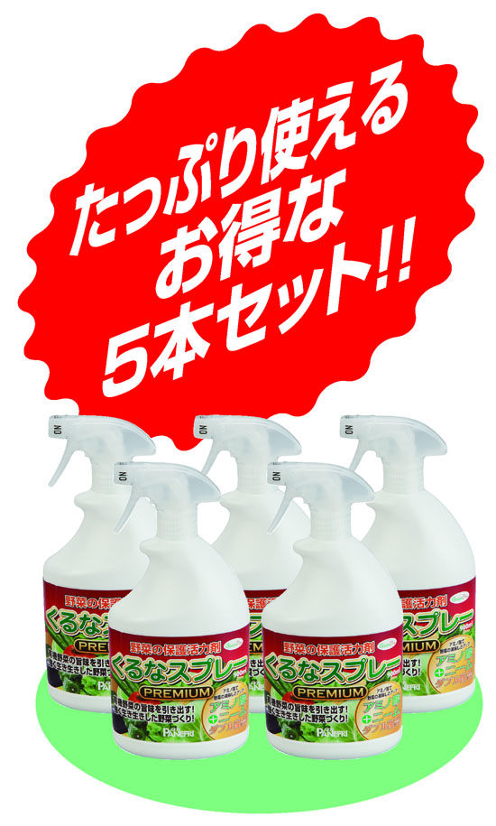 楽しい家庭菜園。作物を元気に育てるには、しっかりした害虫対策と栄養補給が不可欠! でも、あれもこれもでは面倒という方におすすめなのが、保護液と活力剤がひとつになった1本2役の「くるなスプレープレミアム」です。電気の素となるアミノ酸をたっぷり含んだサトウキビ発酵液が、野菜でも花でもすくすく成長させます。収穫量が増すだけでなく、色つやをよくし、糖度を上げ、味もおいしくなります。害虫対策は、ニーム種子と青森ヒバの精油が威力を発揮。害虫が嫌がって近寄ってこず、食い荒らされる心配はもうありません。散布は簡単で、シュッとスプレーを噴射するだけ。農薬や化学合成の有害物を一切含まない天然成分100%ですので、収穫直前でも安心してお使いいただけます。作物にも人にもうれしい、効果抜群の虫除け&肥料スプレーです。