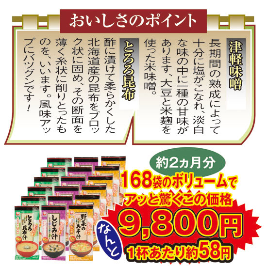 おいしいみそ汁手軽に168食!!