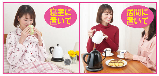 電気ケトルは大きくておしゃれなものが少ない…。注ぎ口が大きくて注ぎにくい…。そんなご不満を解消したのが本品です。コーヒーなら約3杯、カップラーメンなら約2個分がすぐ沸かせるコンパクトサイズ。だから水の分量にムダがなく、経済的にも助かります。キッチンやテーブルをおしゃれに演出するかわいいデザインも魅力的。極細の注ぎ口は急須などにも注ぎやすく、湯量の調節がラクラクです。操作もとても簡単で、スイッチひとつでお湯がすぐ沸くから面倒いらず。コードレスなので台所からリビングなどにも持ち運び簡単で、空だき防止機能付きで安心です。今回は、2個組をお選びいただくと、1個あたりナント4,000円もお得ですので、ぜひとも2個組をおすすめいたします。
