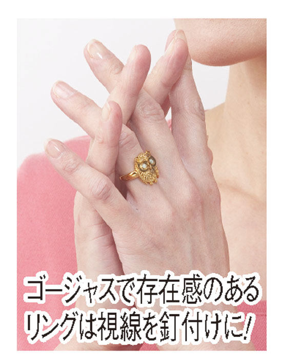古くから森の賢者として愛され、古代ギリシャでは知恵と信頼の象徴として親しまれてきたフクロウの立ち姿をあしらったリングです。日本では、「不苦労」「福籠」などの縁起の良い語呂でお守りとしても人気があり、首が回ることから金運がつく縁起物としても知られます。そんなフクロウの大きな目には邪気を払い金運を招くとされる石、キャッツアイを使用。フクロウの金色は大いなる金運を呼び寄せてくれそうです。このリングをぜひ指元にお飾りいただき、大いなる福運と金運をしっかりと手中に収めてください。