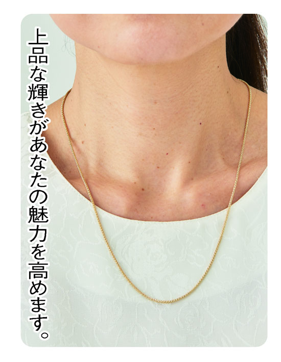 近年、高騰を続けるゴールド。その贅沢な18金を使用した、世界が熱い注目を注ぐジュエリー王国・イタリア発の価値あるネックレスです。太めでボリュームがあり、その形からポップコーンの愛称を持つボンバータチェーンは、網目のようにとてもキレイにデザインされスタイリッシュな雰囲気が魅力。肌あたりは柔らかで、ある程度のコシがあるのであなたの胸元に滑らかで美しいラインを描きます。ドレスアップした時に18金の輝きがゴージャスで、シンプルなのでカジュアルな装いに合わせて普段使いもできます。ファッション小物としてはもちろん、一生ものの大切な財産としてぜひお持ちください。