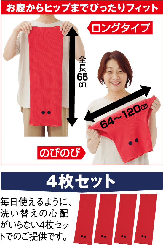 気温が下がってくると、腰のコリやお腹の冷えが急に気になりますよね。腹巻きはお腹の冷えを予防できても腰のコリまでは改善できなくて…。そんな方におすすめしたいのが、血行促進に効果のある永久磁石を腰の部分に2つ埋め込んだロングタイプ腹巻きです。お色は古くから健康・開運に良いとされる赤。赤色を身に着けていると縁起が良いとされ、巣鴨では赤色の肌着衣料の専門店がお年寄りに人気を博しています。ぐ~んと伸びて締め付け感のない生地だから胸からお尻までしつかりと温めてくれます。、永久磁石が気になる腰のコリをほぐすので、つけて寝れば翌朝にはスッキリ、ポカポカの気分でお目覚め。朝からぬくぬくと元気に過ごせます。
