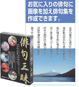 俳句三昧は、従来紙と鉛筆で整理した俳句をパソコン上で整理するソフトウェアです。簡単で確実な記録、多彩な検索やさまざまな形式での印刷ができ、パソコンで簡単に俳句帳を作成していただけます。語句や日付、場所などで探せる高度な検索機能。俳句づくりの手本になる著名俳人、正岡子規、松尾芭蕉、小林一茶、与謝野蕪村、河東碧梧桐などの俳句を4万句以上収録。さらに季語を2万6千以上収録していますので俳句を詠むのに参考にしていただけます。また、書き溜めた俳句は縦書きに表示し、印刷したり、お気に入りの俳句に写真の画像を入れて美しいオリジナル俳句集を簡単に作ることができます。同じソフトをお持ちの友人同士で、俳句帳の交換も楽しめます。