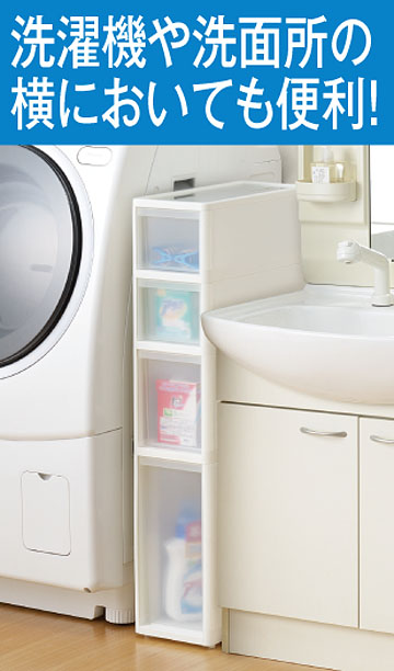 調味料や油、缶詰などのストック、置き場所に困りませんか?いつも台所が片づかず、炊事のジャマになったり、どこに置いておいたか忘れて探すのに困ったり…。そこでちょっとしたすき間をたっぷり収納スペースに変えるキッチンストッカーをご紹介します。わずか幅18cmで、一般的なシンクの高さと同じですからすき間にスッキリ収まります。引き出し式だからホコリが入りにくく、汚れから守って清潔。また勢いよく引き出して落下するのを防止するストッパー付きです。最下段は1.8ℓの醤油ペットボトル、ミネラルウォーターの2ℓペットボトルなど、背の高い瓶類を立てたままで収納が可能。また天板はステンレス製ですから、熱いままの鍋やヤカンを置くことができ重宝です。コロ付きですから、お掃除のときなどサッと動かすこともできます。キッチンはもちろん、洗濯機脇や洗面所などで、小物の収納にもお使いいただけます。