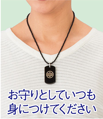 家紋は平安時代後期、公家から始まり、やがて武家の旗印にも用いられ庶民の間にも広がっていきました。家紋はその一つひとつに深い意味が含まれており、代々伝わった家紋には自らのルーツを知る上で大きな意味があります。その家紋を黒いオニキスプレートに金色に彫り入れたネックレス。さらに裏面には般若心経の全文の276文字を彫刻。般若心経は全ての苦の中にあるすべての者たちを救いたいという心からできたと言われています。災いからお守りいただくご加護の力が高まることを願って貴家のご家紋と共にいつも身に着けてお楽しみいただけます。家運隆盛と心の平安をお求めいただけるこのオニキスネックレスです。