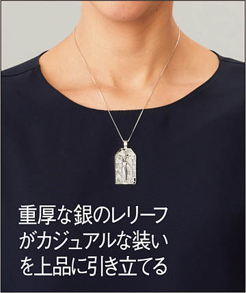 古代エジプトの文化を今に伝える遺跡の壁画をモチーフに、立体的なレリーフで鮮やかに浮かび上がらせ、オリエントのエキゾチックな雰囲気を漂わせるシルバーペンダント。古代エジプト王朝をイメージしたデザインは、世界最大の国家の1つに君臨し、栄華を極め、今も人々の憧れを誘う王の夢のようにいつまでも胸元で輝き続けます。重厚なシルバーの輝きがカジュアルと装いをお洒落に引き立ててくれます。