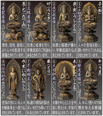 高岡鋳造十二支お守本尊八仏体 (50185-001 ~ 50185-008)