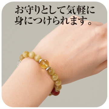 人気の高い皇帝龍に風水招財奥義である「三合金局」を加えた豪華な招財ブレスレットです。古来より風水の神獣と呼ばれ5本爪を持つ「皇帝龍」の頭部と尻尾を繋ぎ、三合金局を金運石とカット水晶などで表しました。龍の中でも5本の爪を持つ皇帝龍は崇高で最高位の威力を持つと言われ、5本の爪で財運や地位、名誉、権力、繁栄を力強く掴みとると言われています。また、 「三合金局」は、金脈の流れを最高位に高める風水最強の財運方位で、巨大な財力を招く秘術とされています。天然石には、金運や幸運を呼び込むと言われる水晶や赤メノウ、黄水晶、ゴールデンタイガーアイを。また、金色ロンデルを使った皇帝龍の目には富を引き寄せると言われるダイヤモンドを埋め込みました。「皇帝龍」と「三合金局」の2つの力を毎日身につけて、金運上昇のチャンスをガッチリと掴んでください。