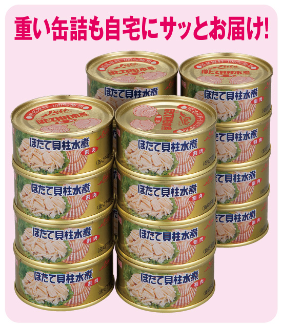 ヘルシーでおいしいと世界中で食べられ、漁獲高も減って品薄状態が続く、大人気のほたて貝柱をドーンとまとめて16缶!ご自宅までお届けします。北の海の荒波にもまれた、身のしまった新鮮なほたて貝を厳選。北海道の名門缶詰工場で加工された、おいしさ折り紙付きの逸品です。製造過程で生じた「割れ」を使っていますので、味は変わらず、その分グンと割安になっています。缶を開け、そのまま酒の肴にしたり、サラダに使ったり、酢の物や和え物にしたりと、使い勝手がよいのもほたて貝柱の人気の秘密。炊き込みごはんや中華スープに入れても美味ですよね。重量のある缶詰は、スーパーなどで買って持ち帰るには大変。ぜひこの機会にお求めください。
