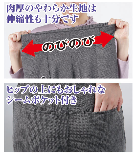 ワンポイントがにくい暖かい冬のガウチョパンツ(2本組) (55384-030 ~ 55384-050)