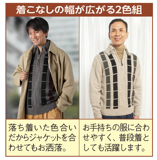 ドンキー襟 紳士のふんわりセーター2色組 (55505-030 ~ 55505-050)