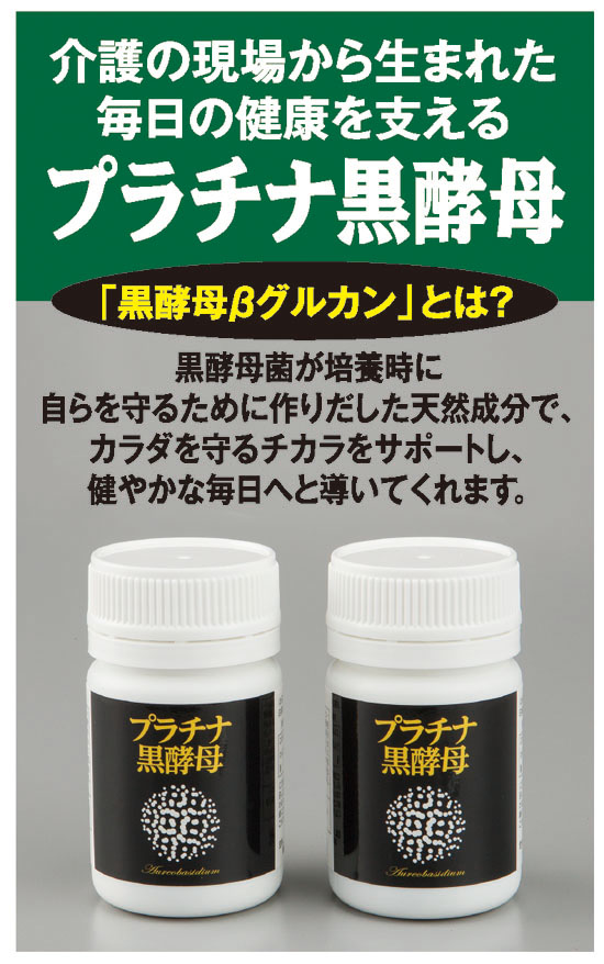 「最近、調子が悪いなあ」「毎日スッキリしない」「老化が気になる」…そんな中高年の方にぜひお試しいただきたいのが、介護の現場から生まれた健康補助食品「プラチナ黒酵母」です! 注目の健康成分、黒酵母βグルカンを高配合。さらに、胎内環境を整える乳酸菌やポリフェノールの1種であるレスベラトール、また、美容と健康維持に欠かせないビタミンCをはじめとする各種ビタミン、ミネラル、食物繊維、アミノ酸を含むビール酵母などをたっぷりと含有。それぞれの相乗効果で、元気な毎日を強力にサポートします。飲みやすい錠剤で、90粒入りを2個セットでお届け。1日3粒が目安ですので、なんと2カ月にわたって飲み続けられます。体調を崩しやすい寒い季節を元気に乗り切ってすこやかに過ごすために、どうぞ今すぐお申し込みください。