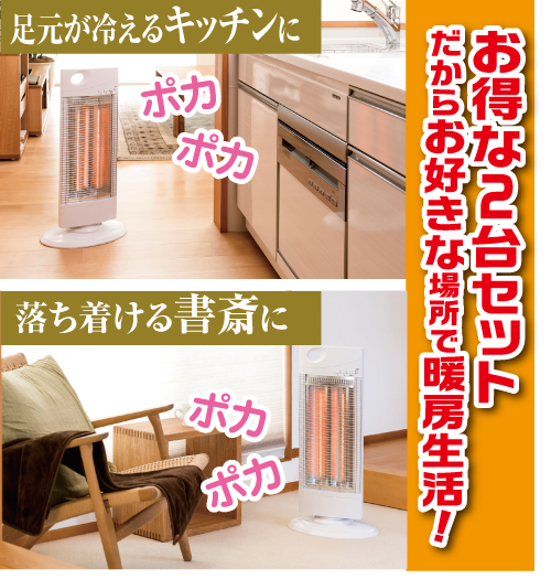 速暖!空気を汚さない遠赤カーボンヒーター2台セット