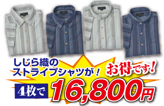 夏にシニア紳士が好んで着用するといわれるしじら織シャツです。汗ばむ頃に最適な肌がベタつかずサラッとして丈夫な生地としても知られ、表面の凹凸やシワが入るしじら織独特の風合いは紳士婦人を問わず人気があります。このシャツは、袖が7分でレギュラーカラーとスタンドカラーの2通りあり、それぞれベージュ系とネイビー系のストライプ柄がセットになった計4枚組。カジュアルなパンツの上にシャツを出す着方はより夏らしく、もちろんパンツにインしてもキレイに決まります。ノーネクタイのリラックスウェアの時代に、このシャツでぜひおしゃれをお楽しみください。