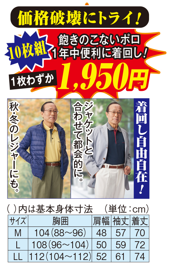 一年中着られる快適長袖ポロ(10枚組)