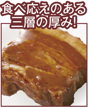作るのに時間と手間がかかり、美味しく仕上げるのが難しい豚の角煮。そこで、いつでも有名店のような美味しさをご家庭で手軽にお召し上がりいただける、こだわりの缶詰をご紹介します。プロのお肉屋さんが最も高く評価するデンマーク産の豚肉、それもLサイズの肉厚豚バラ肉(三枚肉)を贅沢に使用。旨味とコクを最大限引き出すよう100℃以上の温度でじっくり長時間煮込んで仕上げています。とろ〜りとろけ、口いっぱいに広がる深い味わい。いつでも本格的な味が手軽に楽しめる幸せを、ぜひ味わってください。