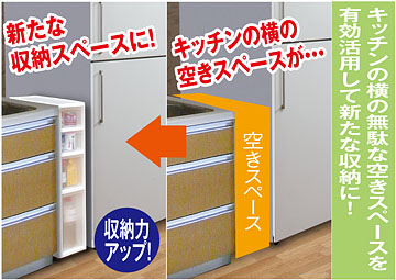 調味料や油、缶詰などのストック、置き場所に困りませんか?いつも台所が片づかず、炊事のジャマになったり、どこに置いておいたか忘れて探すのに困ったり…。そこでちょっとしたすき間をたっぷり収納スペースに変えるキッチンストッカーをご紹介します。わずか幅18cmで、一般的なシンクの高さと同じですからすき間にスッキリ収まります。引き出し式だからホコリが入りにくく、汚れから守って清潔。また勢いよく引き出して落下するのを防止するストッパー付きです。最下段は1.8ℓの醤油ペットボトル、ミネラルウォーターの2ℓペットボトルなど、背の高い瓶類を立てたままで収納が可能。また天板はステンレス製ですから、熱いままの鍋やヤカンを置くことができ重宝です。コロ付きですから、お掃除のときなどサッと動かすこともできます。キッチンはもちろん、洗濯機脇や洗面所などで、小物の収納にもお使いいただけます。